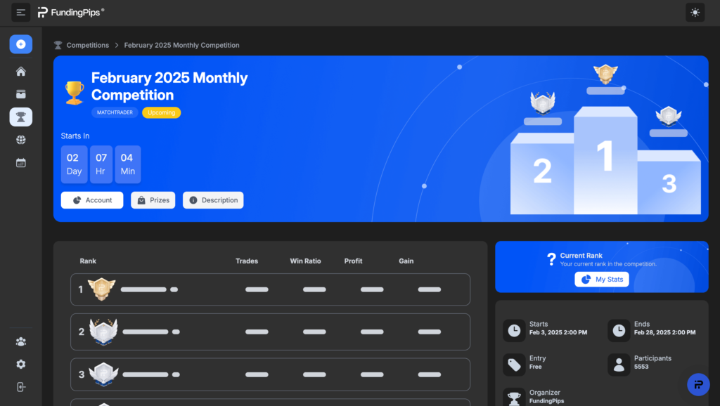 Was uns besonders aufgefallen ist, sind die zahlreichen Trading-Wettbewerbe und Community-Events, die Funding Pips anbietet. Gerade für ambitionierte Trader, die sich mit anderen messen wollen, gibt es hier spannende Möglichkeiten. Besonders erwähnenswert: Die Funding Pips Community Championship, ein kostenloses Trading-Event, bei dem du nicht nur dein Können unter Beweis stellen, sondern auch attraktive Preise gewinnen kannst.