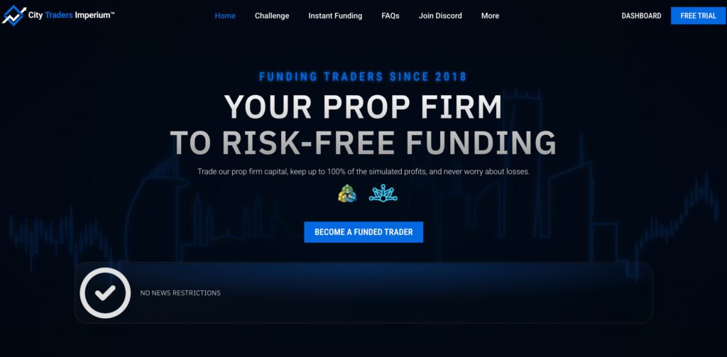 City Traders Imperium (CTI) wurde 2018 gegründet und hat seinen Sitz in Dubai. Das Unternehmen hat sich einen Namen als flexibler und traderfreundlicher Prop-Trading-Anbieter gemacht. Mit einer Bewertung von 4,5 Sternen auf Trustpilot und über 1.200 Bewertungen bietet CTI verschiedene Programme, die sowohl für Anfänger als auch für erfahrene Trader geeignet sind. Besonders hervorzuheben ist das einzigartige Drawdown-Modell, das auf dem Kontostand basiert und somit mehr Flexibilität im Risikomanagement ermöglicht.