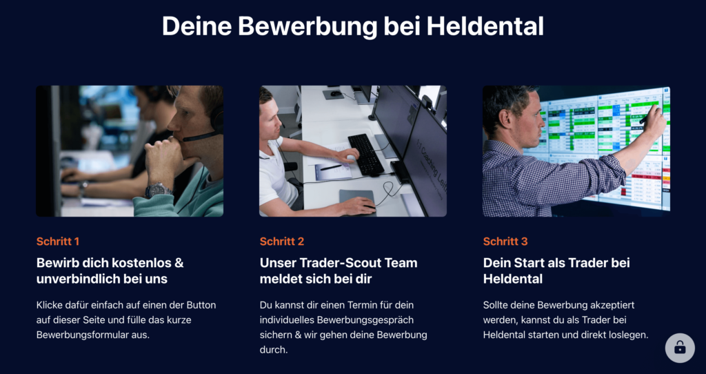 Heldental bietet ein umfassendes Programm, das auf den gezielten Aufbau von Handelsfähigkeiten und langfristige Gewinnbeteiligungen setzt. Durch die Kombination aus Ausbildung, Handelsstrategien und Kapitaleinsatz ohne eigenes Risiko hebt sich Heldental im Prop-Trading-Markt ab. Für ambitionierte Trader, die ihre Karriere in einer flexiblen und leistungsorientierten Umgebung vorantreiben möchten, stellt Heldental eine hervorragende Option dar.