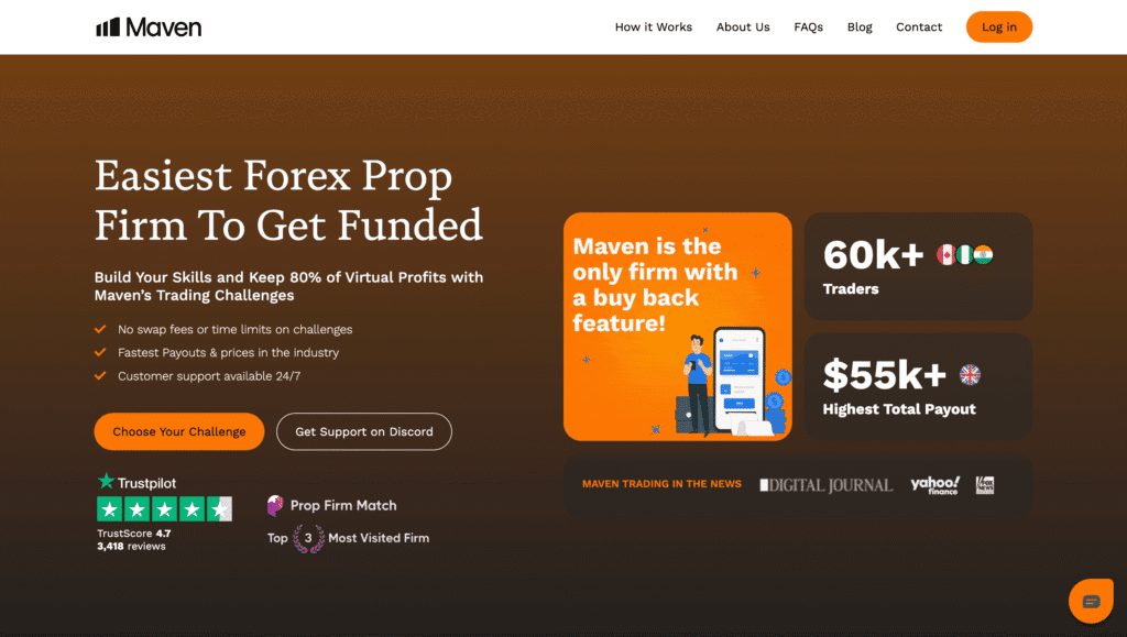 Maven Trading ist ein Prop-Trading-Unternehmen, das Tradern weltweit ermöglicht, mit firmeneigenem Kapital zu handeln. Besonders auffällig sind die günstigen Einstiegskosten, eine große Auswahl an Challenge-Modellen und ein hoher Gewinnanteil von bis zu 100 %. Dennoch gibt es Einschränkungen bei Plattformen und Spreads, die man kennen sollte.