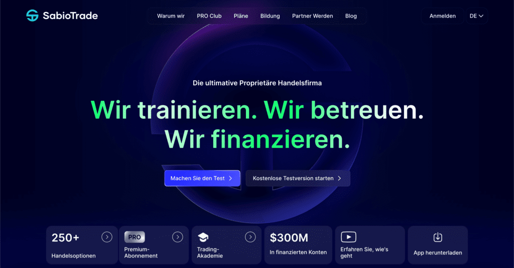 Sabio Trade ist eine moderne Prop Trading Firma, die sich klar von der Konkurrenz abhebt – insbesondere durch ihren starken Fokus auf Trader-Ausbildung und persönliches Mentoring. Statt nur klassische Challenges anzubieten, setzt Sabio auf ein ganzheitliches Konzept, das sowohl Einsteiger als auch fortgeschrittene Trader unterstützt.